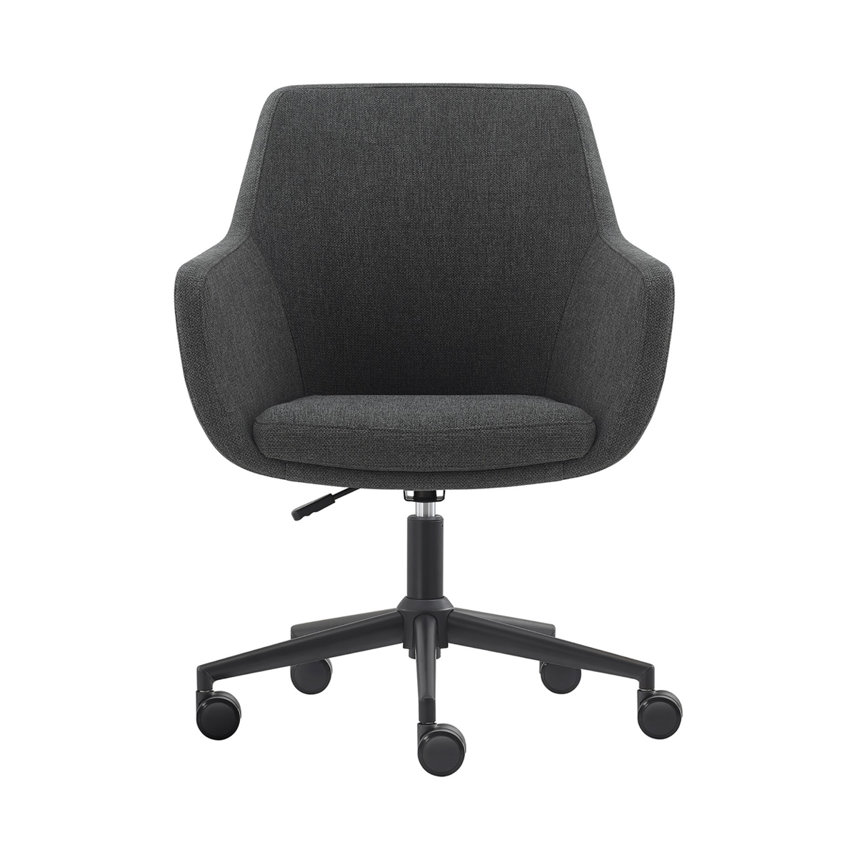 Base: estrella pentagonal de 5 puntas fabricada en aluminio fundido con acabado negro mate.Diámetro: 610 mm (24”).Forma piramidal, ligera y estable.Capacidad de carga: 730–790 kg Estructura interna: respaldo y brazos en madera triplay preformada, ensamblados y reforzados con capas de alta densidad.Tapizado: combinación de cuero sintético Soft Revolving Leather y textil negro premium, resistente al desgaste y de tacto suave. Relleno: espuma de alta densidad para máximo confort.